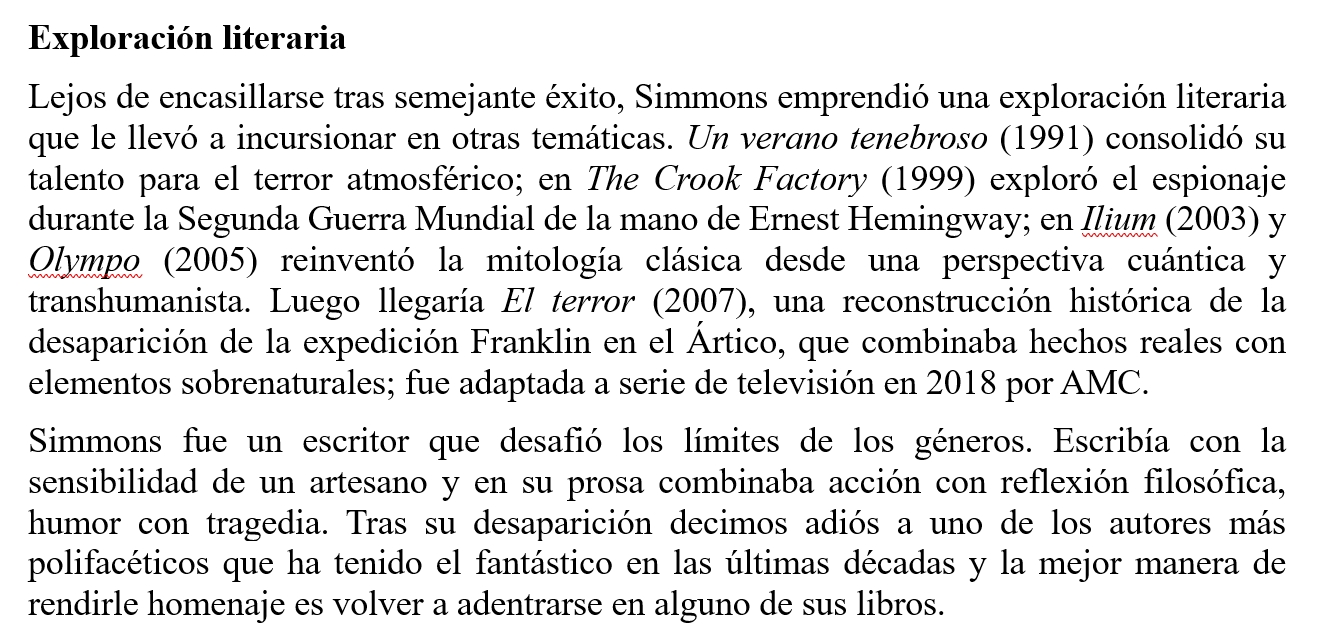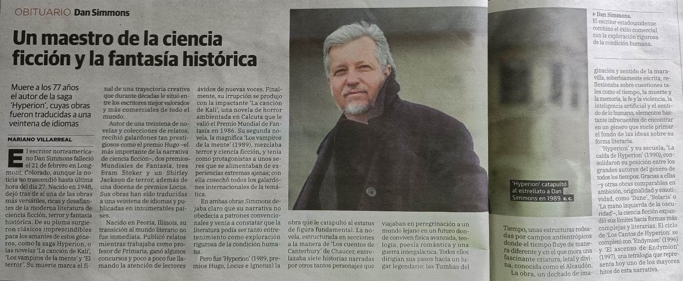 Obituario de Dan Simmons. Publicado en el diario El Correo (1-3-2026)